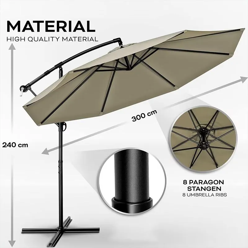 Имате гама от цветове, от които да избирате, като зелено, червено, синьо, бежово, сиво или черно, или можете да изберете персонализиран цвят, който да отговаря на вашия стил. Независимо дали се сблъсквате с жарко лятно слънце или прохладен пролетен следобед, Cantilever Parasol ви осигурява страхотно изживяване на открито.