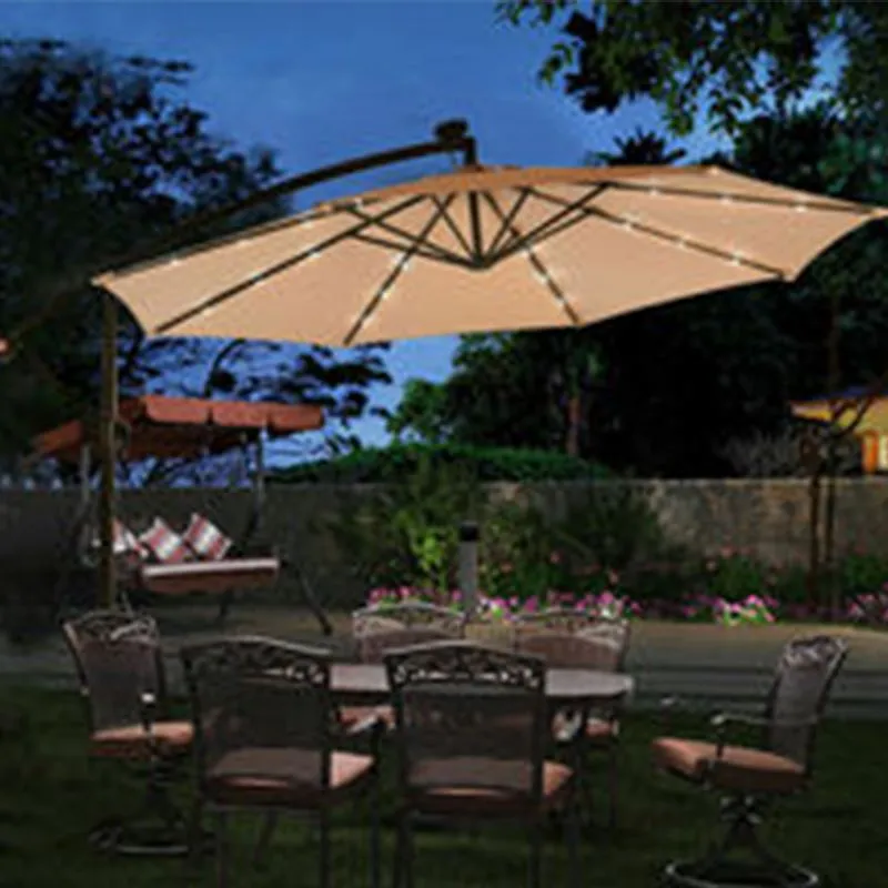 Имаме удоволствието да ви представим сивия конзолен чадър със светлини. Този вътрешен чадър със светлини има модерен дизайн и е идеален за вътрешни дворове, градини, ресторанти и други места на открито. Основните му характеристики включват стоманени скоби отстрани, скоби за окачване, напречна основа, ребра и сенник. Неговите скоби помагат на чадъра да остане неподвижен за дълго време и също така има силата да се бори с вятъра и дъжда, когато дойде. Чадърът е с радиус от 1,5 метра, което е идеално за чат и пиене на чай с няколко приятели.