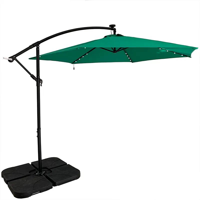 Този конзолен чадър 3m се различава от другите чадъри по това, че има соларни LED светлини. Това го прави по-конкурентоспособен и ви позволява да се наслаждавате на свободното си време без притеснения, независимо дали е ден или нощ. Неговият дизайн е прост и модерен, фокусиран върху комбинацията от функционалност и естетика и може да осигури на потребителите висококачествени сенници и защита от дъжд.