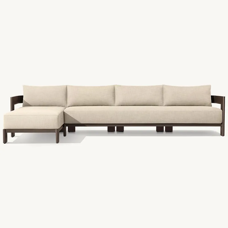 Изработен с прецизност, нашият 4-местен външен диван разполага с висококачествена алуминиева рамка, която предлага превъзходна издръжливост и устойчивост на ръжда. Алуминият, известен със своите леки, но здрави свойства, гарантира, че вашите външни мебели ще издържат на природните стихии, без да се поддават на корозия или износване. Елегантното прахово боядисано покритие осигурява изискан външен вид, като същевременно предпазва структурата от щети на околната среда.