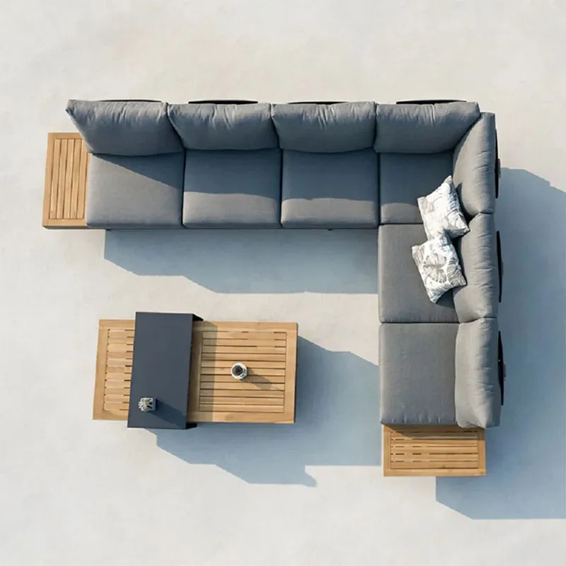 Изработена от висококачествен алуминий, сивата външна секция е създадена да издържи. Алуминият е идеален материал за външни мебели поради своята издръжливост и устойчивост на ръжда и корозия. Това гарантира, че вашата секция ще запази своята цялост и външен вид при различни метеорологични условия, от силно слънце до силен дъжд.