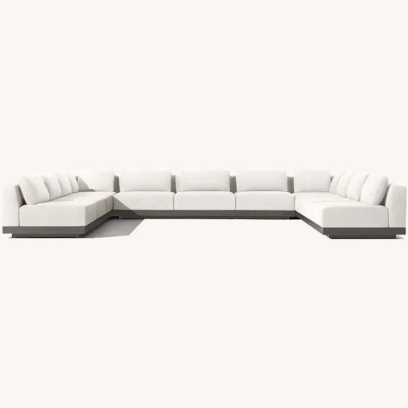Въведете лукс и просторен комфорт във вашето външно жилищно пространство с нашия извънгабаритен диван за открито. Перфектен за обширни вътрешни дворове и градински площи, този диван е изработен от висококачествен алуминий, гарантиращ издръжливост и стил. Проектиран е да осигури достатъчно пространство за релаксация и социални събирания, което го прави централна характеристика на всяка обстановка на открито.