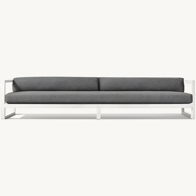 Нашият диван във вътрешен двор и любовна седалка са конструирани със здрава алуминиева рамка, която осигурява здрава, но лека основа. Известен със своята устойчивост на ръжда и атмосферни влияния, алуминият е идеален материал за външни мебели. Това позволява на нашия диван и любовна седалка да издържат на природните стихии и да запазят елегантния си вид за години напред. Елегантното покритие на алуминия добавя модерен щрих към тези части, подобрявайки цялостната естетика на вашия вътрешен двор.